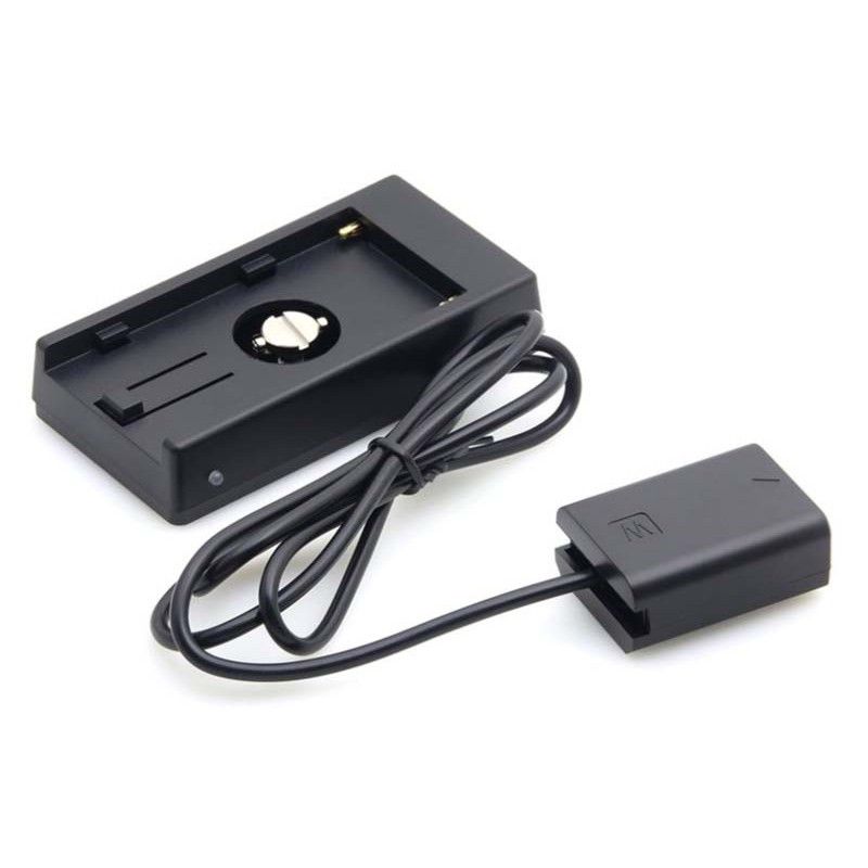 Адаптер для батарей NP-F і муфта для Sony NP-FW50 розроблений для збільшення часу автономної роботи вашої камери завдяки акумулятору Sony NP-F серії. Він має різні вихідні порти, вихідний порт 7,4 В (постійного струму (5,5/2,1 мм)) і USB роз'єм. Зі встановленим акумулятором цей адаптер можна використовувати як Powerbank. Він обладнаний світлодіодним індикатором, який загоряється червоним, коли рівень заряду батареї менш ніж 30 відсотків. Коли індикатор блимає, це означає, що рівень заряду батареї менш ніж 10 відсотків, і вам необхідно замінити батарею. Пластина має гумову прокладку внизу для стабільнішого встановлення.