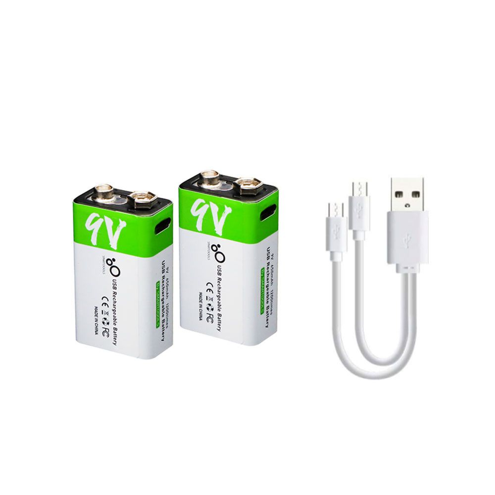 Комплект акумуляторів типу Крона 6F22 (CR-9V) 9 Вольт (комплект із 2 шт.) — з роз'ємом TYPE-C Smartools 650 mAh + кабель TYPE-C