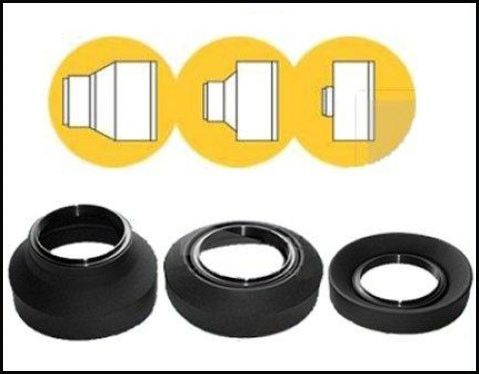 Особливості: - Резінова бленда сумісна з більшістю звичайних типів об'єктивів. - Бленди такого типу дозволяють вести зйомки на відкритому повітрі. - Чудова якість гуми, дозволяє легко регулювати довжину. - Мала вага дозволяє зручно утримувати фотоапарат. - Різьбове кільце виготовлене з пластику.