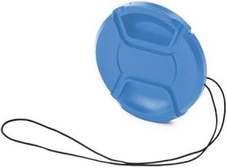Кришка універсальна передня на об'єктив 52 мм — синього кольору — з внутрішнім зачіпанням і шнурком