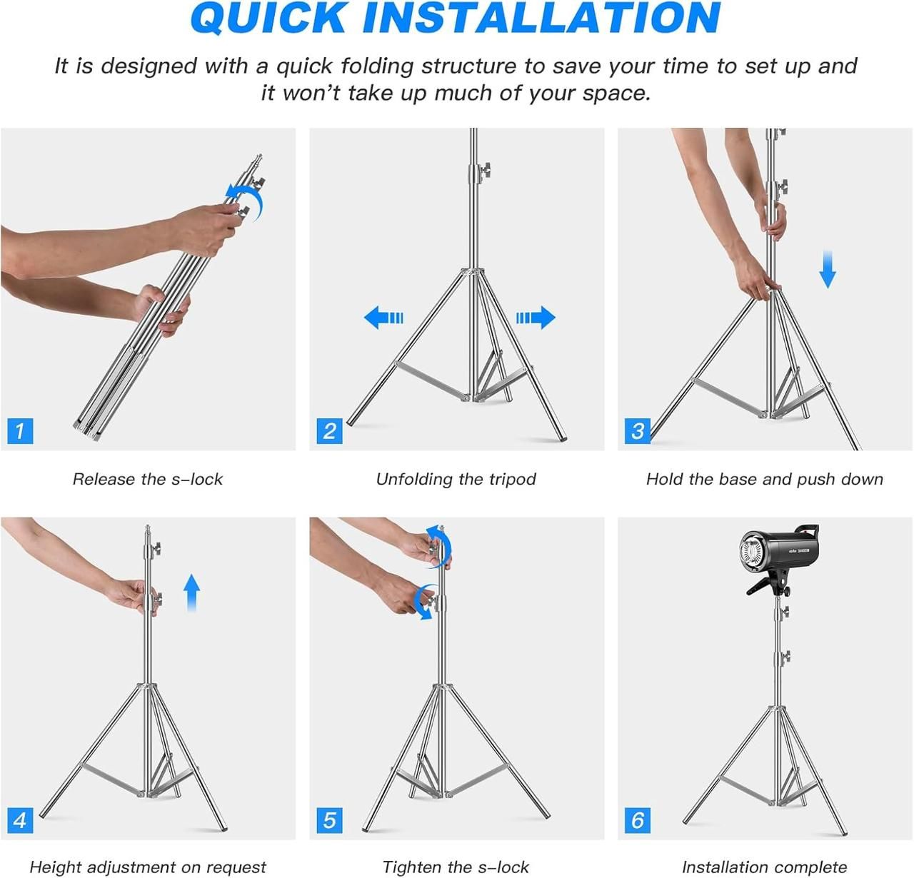 Регульована конструкція, висота регулюється від 75 см до 200 см, а максимальна вантажність становить 2 кг