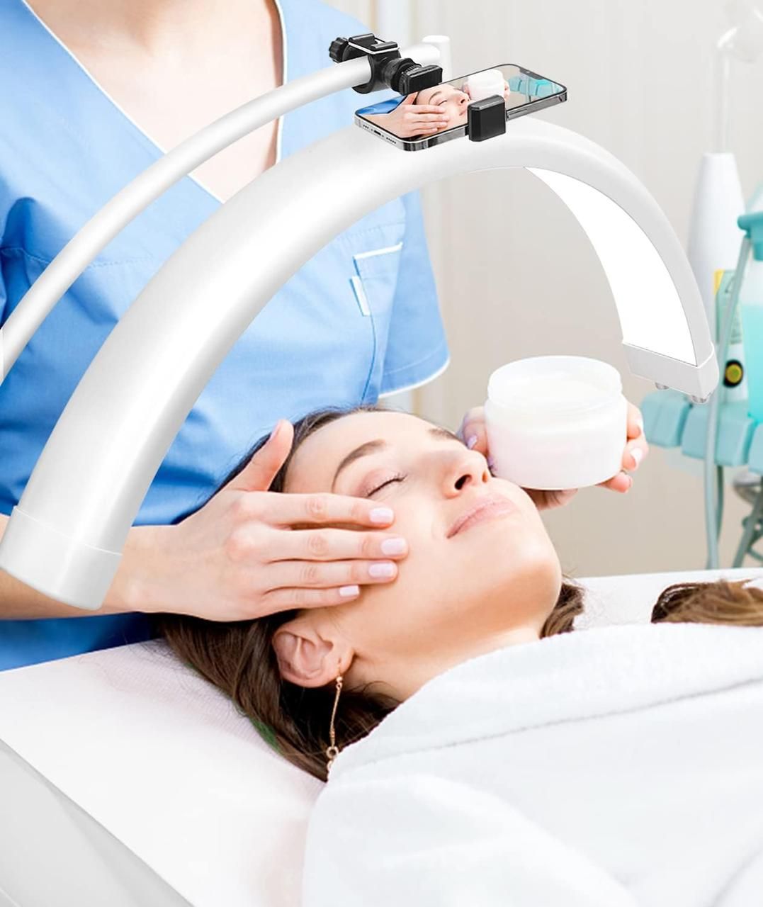 Безтенова лампа на штативі з унікальною формою світильника у формі дуги — це найкращі варіанти професійного світла для стилістів, візажистів, майстрів із нарощування та ламінування вій, майстрів-бровистів, майстрів татуажу, косметологів і інших фахівців у сфері краси.