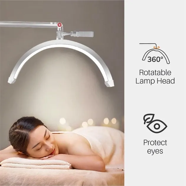 Безтенова лампа на з кріпленням до столу (струбцина) з унікальною формою світильника з унікальною формою світильника як дуги — це найкращі варіанти професійного світла для стилістів, візажистів, майстрів із нарощування та ламінування вій, майстрів-бровистів, майстрів татуажу, косметологів та інших фахівців у галузі краси. Шарнірна стійка з кріпленням до столу має розмір плечей (32 см — 32 см — 23 см) і дає змогу розташувати лампу з необхідним положенням щодо необхідної зони освітлення.
