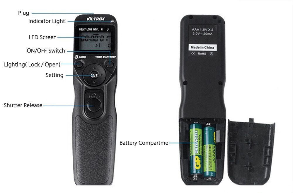 Дротовий пульт керування тросиком Viltrox з таймером і LCD - MC-C3