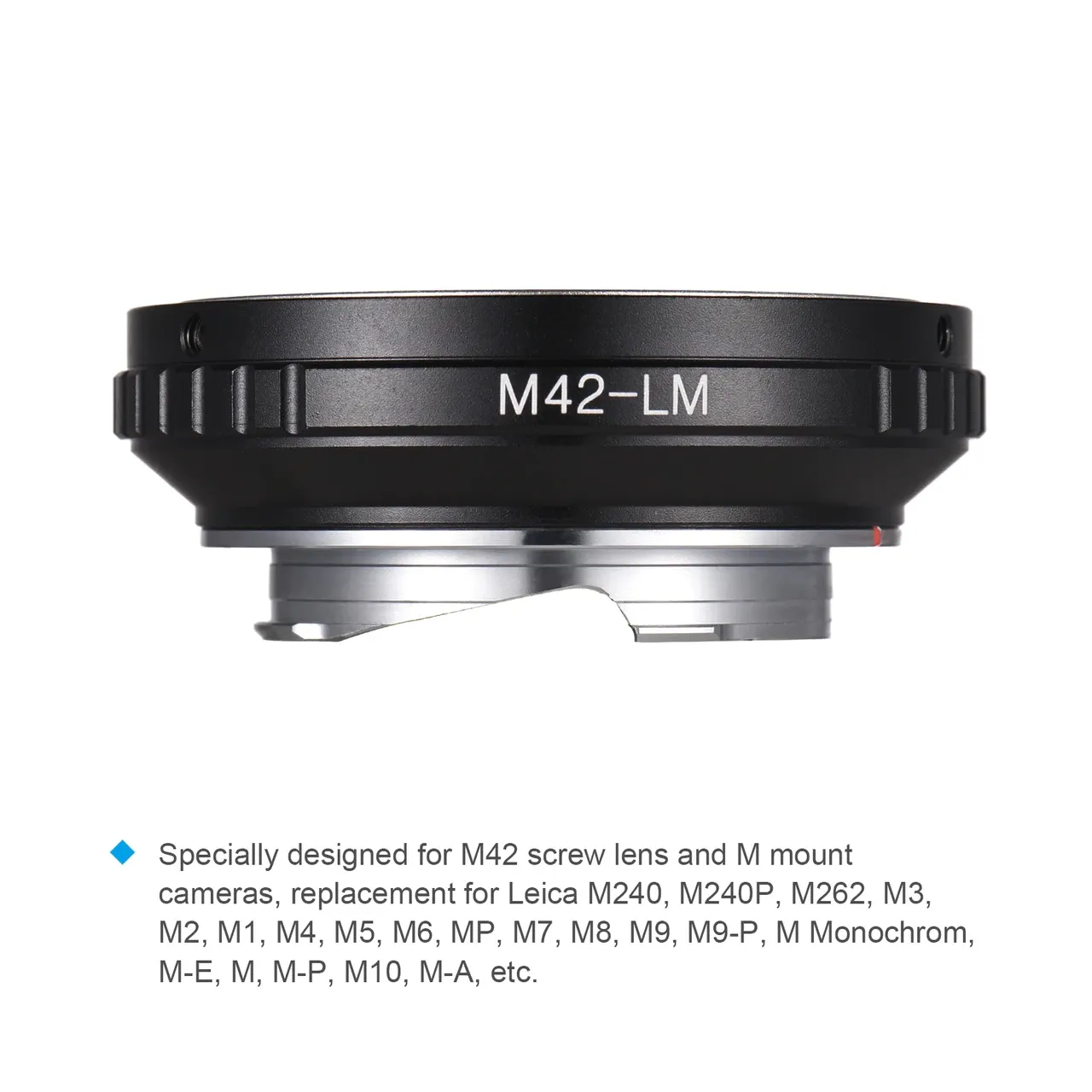 Адаптер дає змогу встановлювати об'єктиви з різзю М42 на всі фотоапарати з байонетом Leica M.