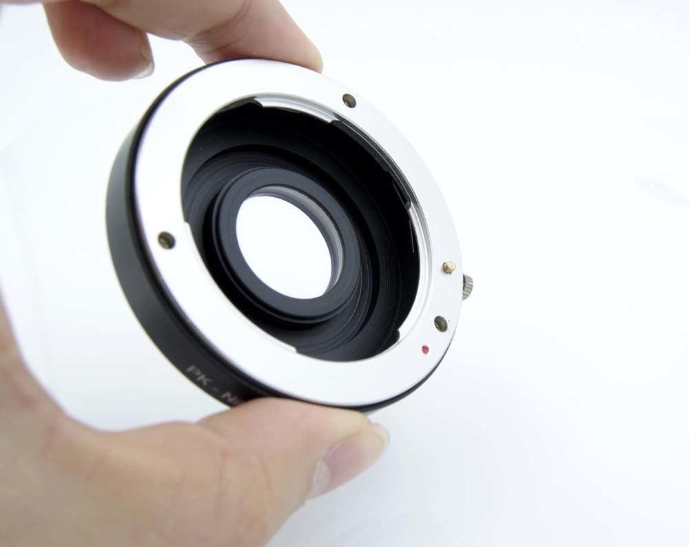 Перехідне кільце Pentax PK - Nikon з коректною лінзою Дозволяє встановити стару оптику з байонтом Pentax PK на дзеркальні камери серії Nikon. Можлива наводка на нескінченність.