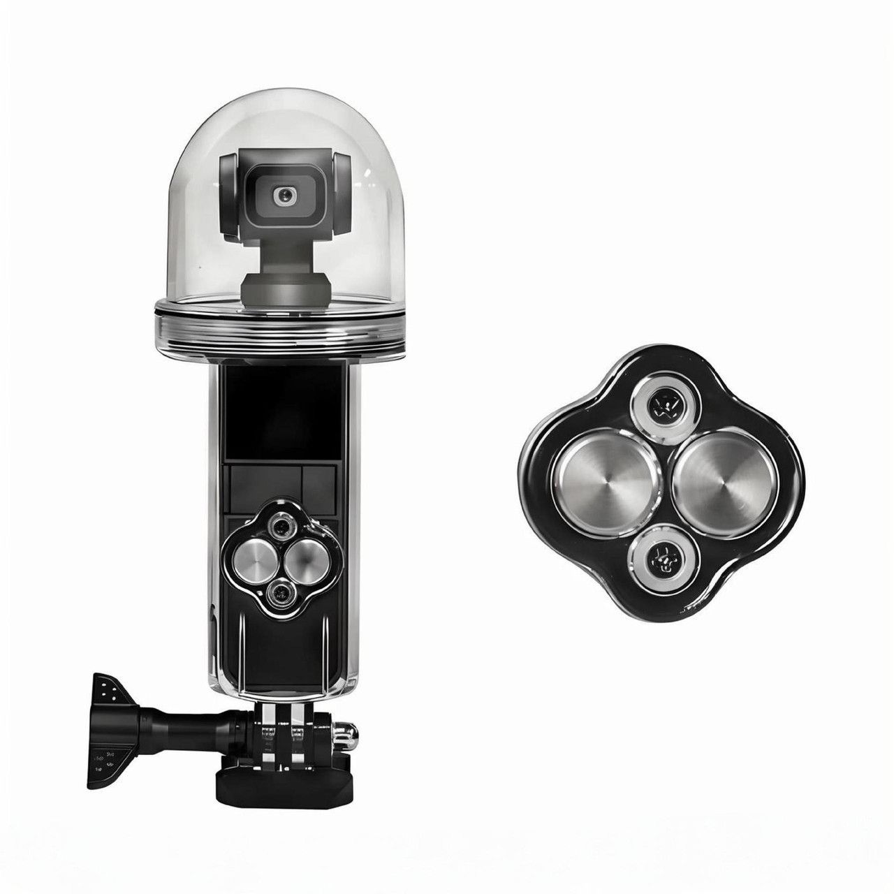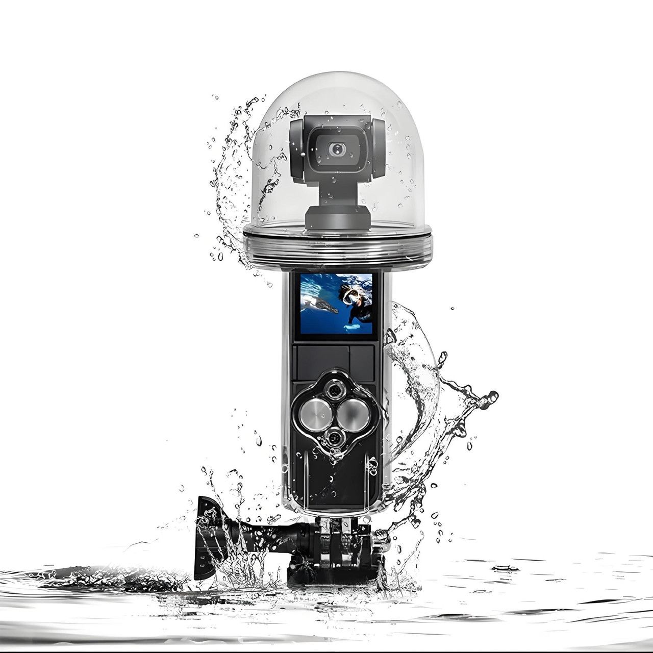 Аквабокс купол Waterproof Case для DJI Osmo Pocket виготовлений із високоякісного акрилового матеріалу з високим коефіцієнтом пропускання світла до 90%. Ударостійкий, водонепроникний бокс захистить вашу камеру не тільки від води, але й від пилу, бруду та ударів. Особливістю цього кейса можна вважати ще й можливість встановлення його на стандартне кріплення типу GoPro, що дасть, наприклад, можливість встановлення на штатив або селфі-палицю. У комплекті силіконовий чохол на купол аквабокса для запобігання подряпинам, який зручно використовувати для транспортування або зберігання водонепроникного боксу. Склепіння дає змогу обертатися камері на 360 градусів, а герметичність дає змогу занурюватися на глибину до 60 метрів.