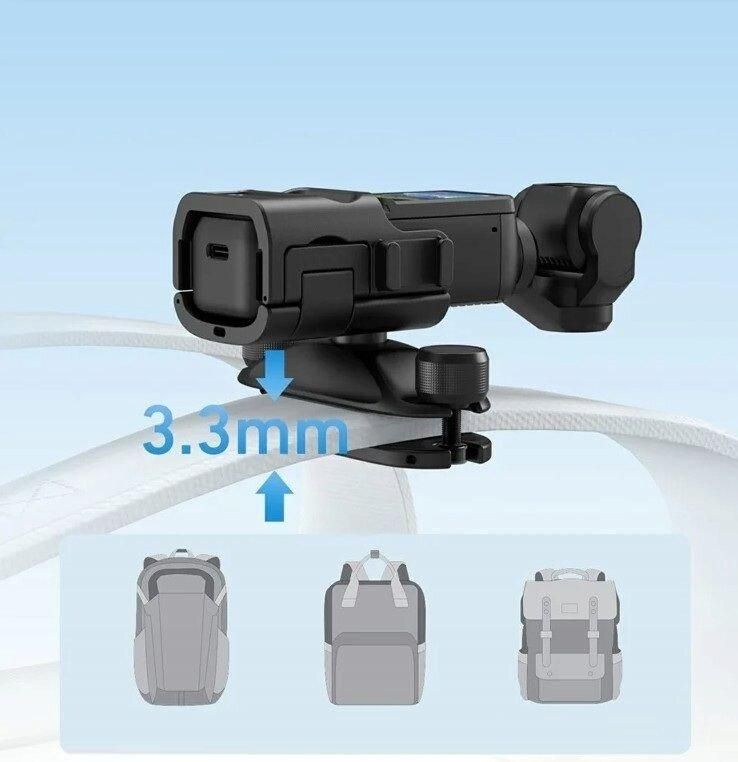 Тримач, призначений для камер DJI Osmo Pocket 3 — ідеально підходить для зручного та швидкого кріплення камери на лямці рюкзака або сумки, плечових ременях або будь-якому іншому ремені завтовшки до 3,3 мм.