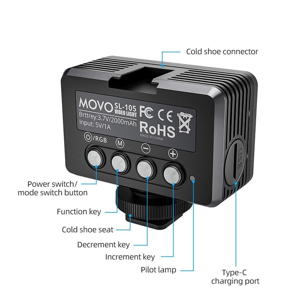 Лампа LED-світло з RGB водонепроникна Movo SL-105, LED-підсвітка для екшн-камер Xiaomi YI, SJCam, GoPRO