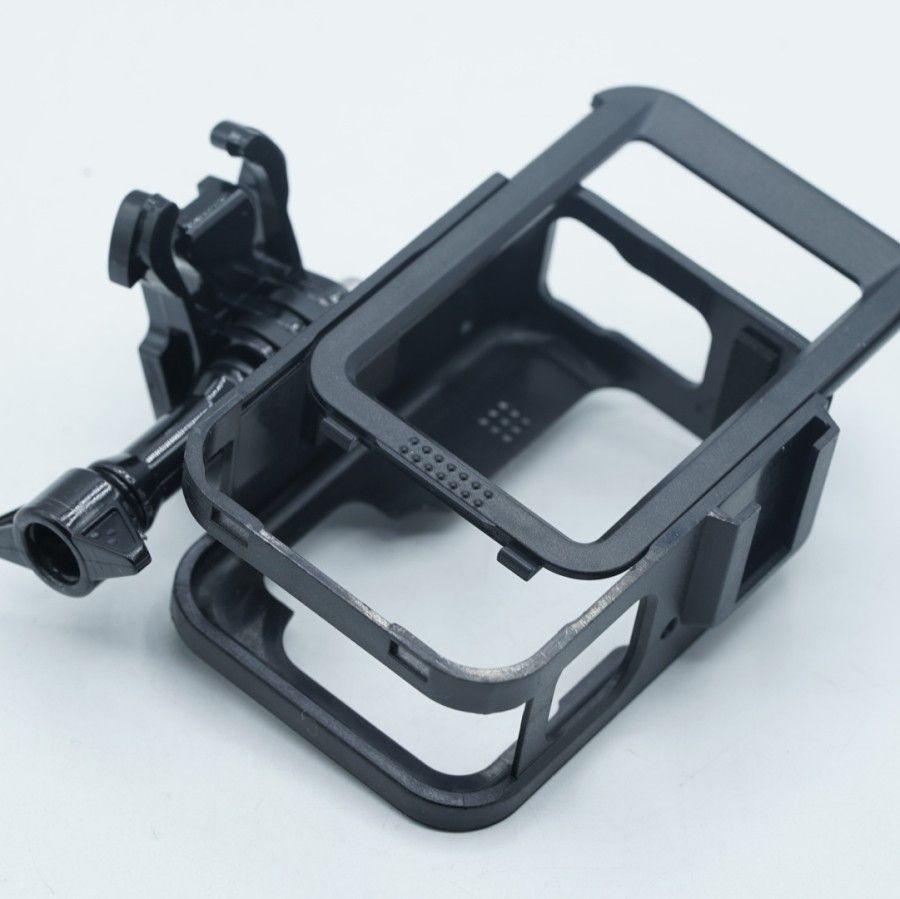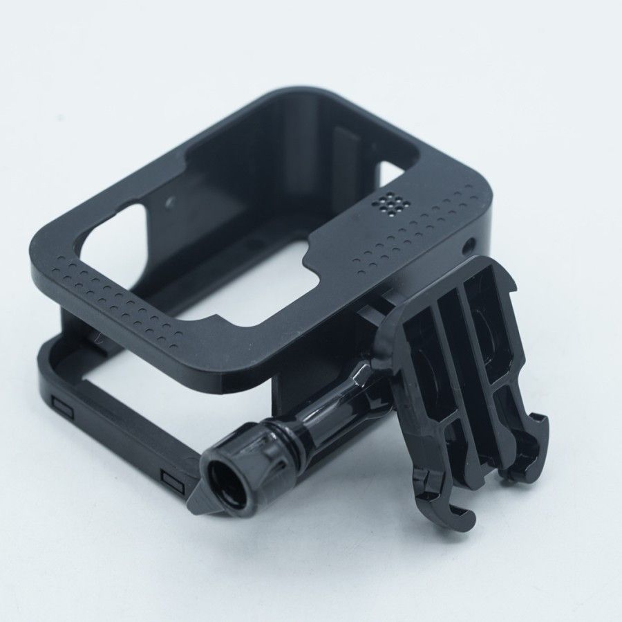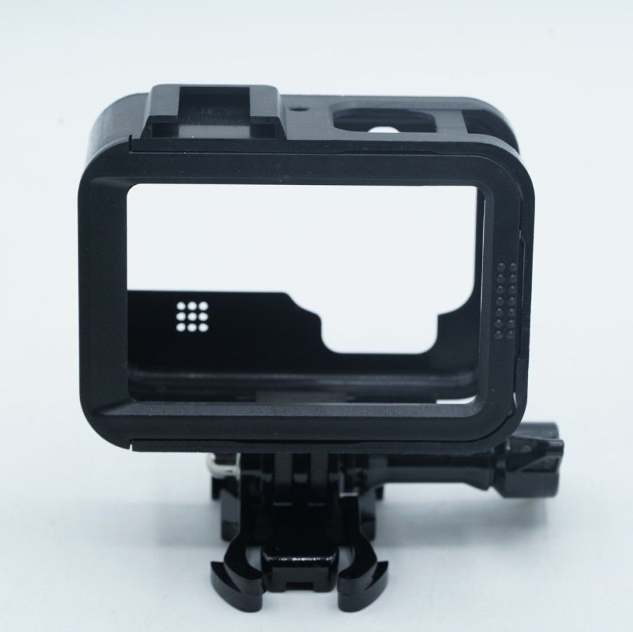 За допомогою рамки легко встановлювати екшн камеру GoPro Hero 9, 10 стаціонарно, особливо не обтяжуючи її. Водночас відкритий доступ до роз'єму та мікрофона, завдяки чому звук на записі не приглушений, як у аквабоксе. Рамка має зручну клямку задньої дверцят, яка просто відкривається, але досить надійно фіксується. Також на верхній частині рамки є кріплення типу "гарячий кашмак", на який ви легко зможете встановити додаткові ґаджети, як-от LED-підсвітку або накамерний мікрофон.