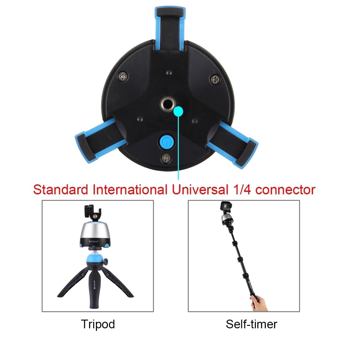 Цей автоматичний поворотний штатив комп'ютерний штатив Puz PU362L призначений для спрощення панорамних фото на фотоапарат, телефон, відеокамеру або екшн-камеру.