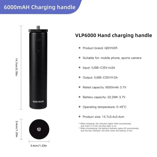 QISYKER VLP6000 — монопод — тримач — стедикам для екшн-камери, телефона з powerbank на 6000 ma