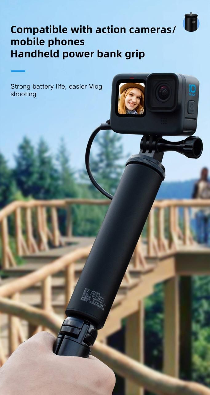 VLP6000 це монопод-тримач із вбудованим powerbank (пауербанком) місткістю 6000 ма. Цей монопод допоможе вам істотно збільшити час знімання вашою екшн камерою або телефоном.