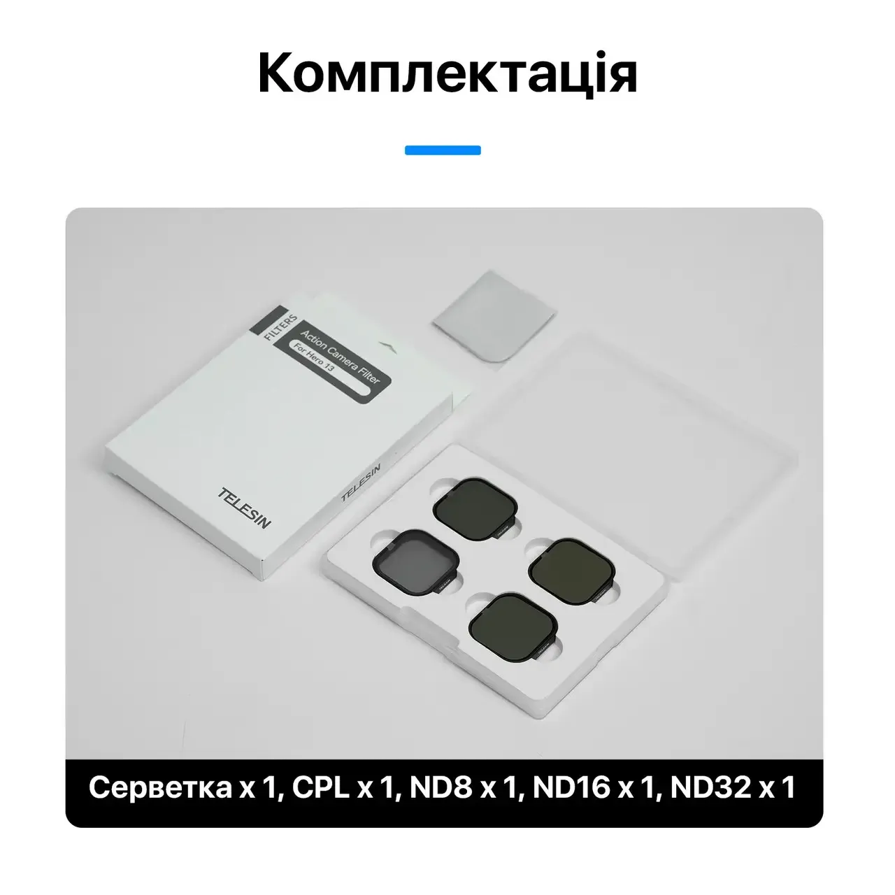 Набір світлофільтрів Telesin CPL+ND8/16/32 для GoPro Hero 13 (код S5-FLT-13-TGP) — 4 шт.