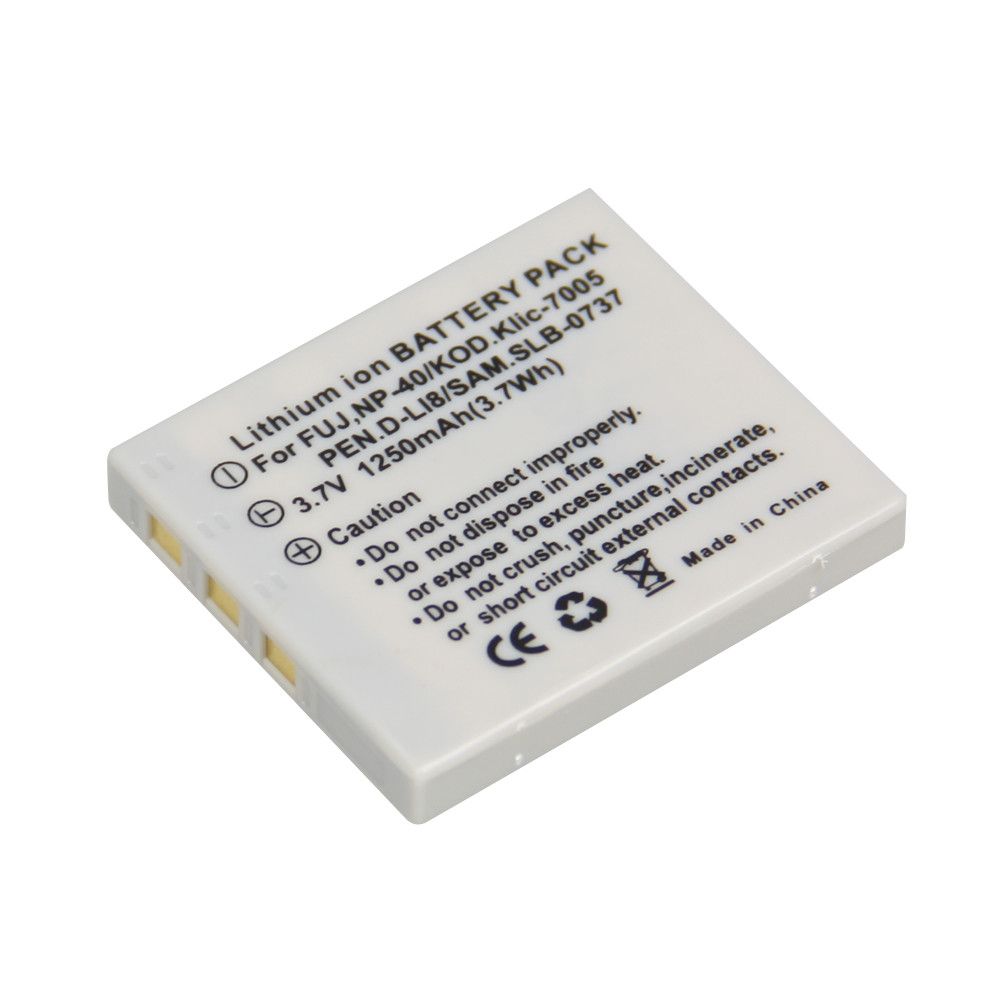 - Акумулятор для Fujifilm NP-40, Panasonic CGA-S004, Panasonic CGA-S004E, Panasonic DMW-BCB7, Pentax D-LI8, Pentax D-LI85, Pentax D-LI95, Kodak KLIC-7005, Samsung SLB-0737, Samsung SLB-0837, Ricoh D-LI8, Ricoh D-LI85, Konica NP-1, Ergo NP-40, UFO DS-5020, Rekam NP-40. 100% сумісності!