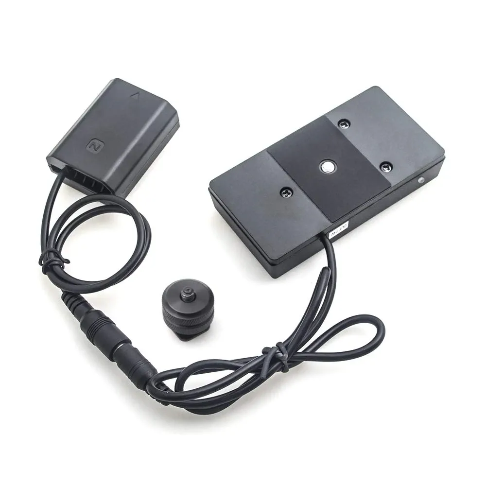 Адаптер для батарей NP-F і муфта для Sony NP-FZ100 розроблені для збільшення часу автономної роботи вашої камери завдяки акумулятору Sony NP-F серії. Він має різні вихідні порти, вихідний порт 7,4 В (постійного струму (5,5/2,1 мм))  і USB роз'єм. Зі встановленим акумулятором цей адаптер можна використовувати як Powerbank. Він обладнаний світлодіодним індикатором, який загоряється червоним, коли рівень заряду батареї менш ніж 30 відсотків. Коли індикатор блимає, це означає, що рівень заряду батареї менш ніж 10 відсотків, і вам необхідно замінити батарею. Пластина має гумову прокладку внизу для стабільнішого встановлення.
