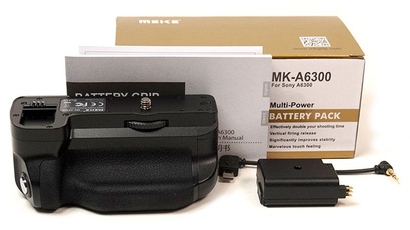 Завдяки Ергономічній конструкції батарейного блоку фотокамеру легше утримувати під час зйомок у вертикальному положенні. Для джерела живлення блока Mike Sony MK-A6300 використовують дві спеціальні акумуляторні батареї NP-FW50. Для зручності знімання вертикальних кадрів ви можете знайти додаткову кнопку затвору, кнопки АЄ lock/FE lock/AF point selection, кнопку включення автофокусу, а також диск керування. Мається вбудований підйом для зміцнення штатива.