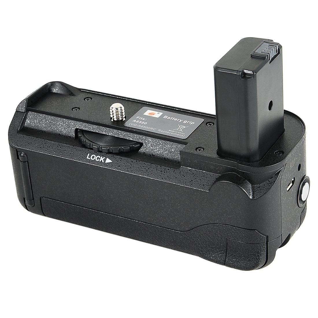 Завдяки Ергономічній конструкції батарейного блоку фотокамеру легше утримувати під час зйомок у вертикальному положенні. Як джерело живлення блоку VG-A6500 використовують дві спеціальні акумуляторні акумулятори NP-FW50. Для зручності знімання вертикальних кадрів ви можете знайти додаткову кнопку затвору, кнопки АЄ lock/FE lock/AF point selection, кнопку включення автофокусу, а також диск керування. Мається вбудований підйом для зміцнення штатива. Одним з переваг цієї моделі є наявність роз'єму Micro USB що дозволить вам, при наявності відповідного кабеля, і Зарядити акумулятори не виймаючи їх, прямо в батарейному блоці.