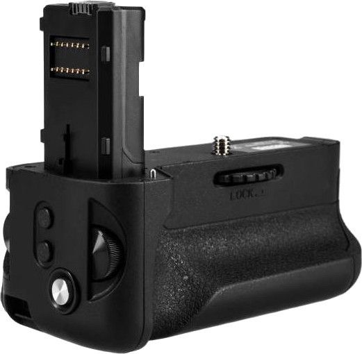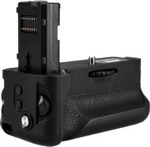 Завдяки Ергономічній конструкції батарейного блоку легше тримати фотокамеру під час знімання вертикальних кадрівОсобливо з телеоб'єктивами. Як джерело живлення блоку використано два акумулятор NP-FW50Рукоятка оснащена додатковою спусковою кнопкою затвору, а також трьома налаштовуються кнопки, які використовуються для призначення функцій, які часто використовуються. Знизу розміщено підйом для кріплення на штатив. Мається фіксатор проти згортання і зміщення батарейного блоку у вигляді бадра з нержавіючої сталі, якого немає на батарейних блоках інших виробників