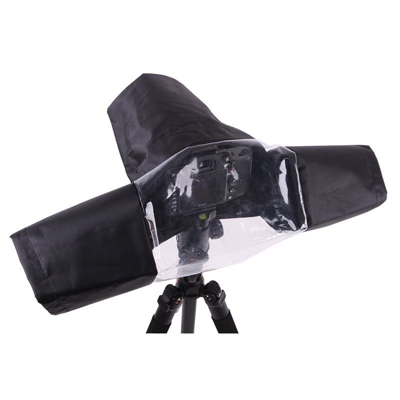 Дощовик для дзеркальної камери. Захисний поліетиленовий рукав із матер'янкими, вологостійкими вставками призначений для захисту камери під час знімання в несприятливих умовах (дощ, сніг та ін.). Розмір дає змогу укрити камеру з великим об'єктивом і фотоспалахом навіть встановлену на штатив. Розмір камери з об'єктивом не має перевищувати 22 см.