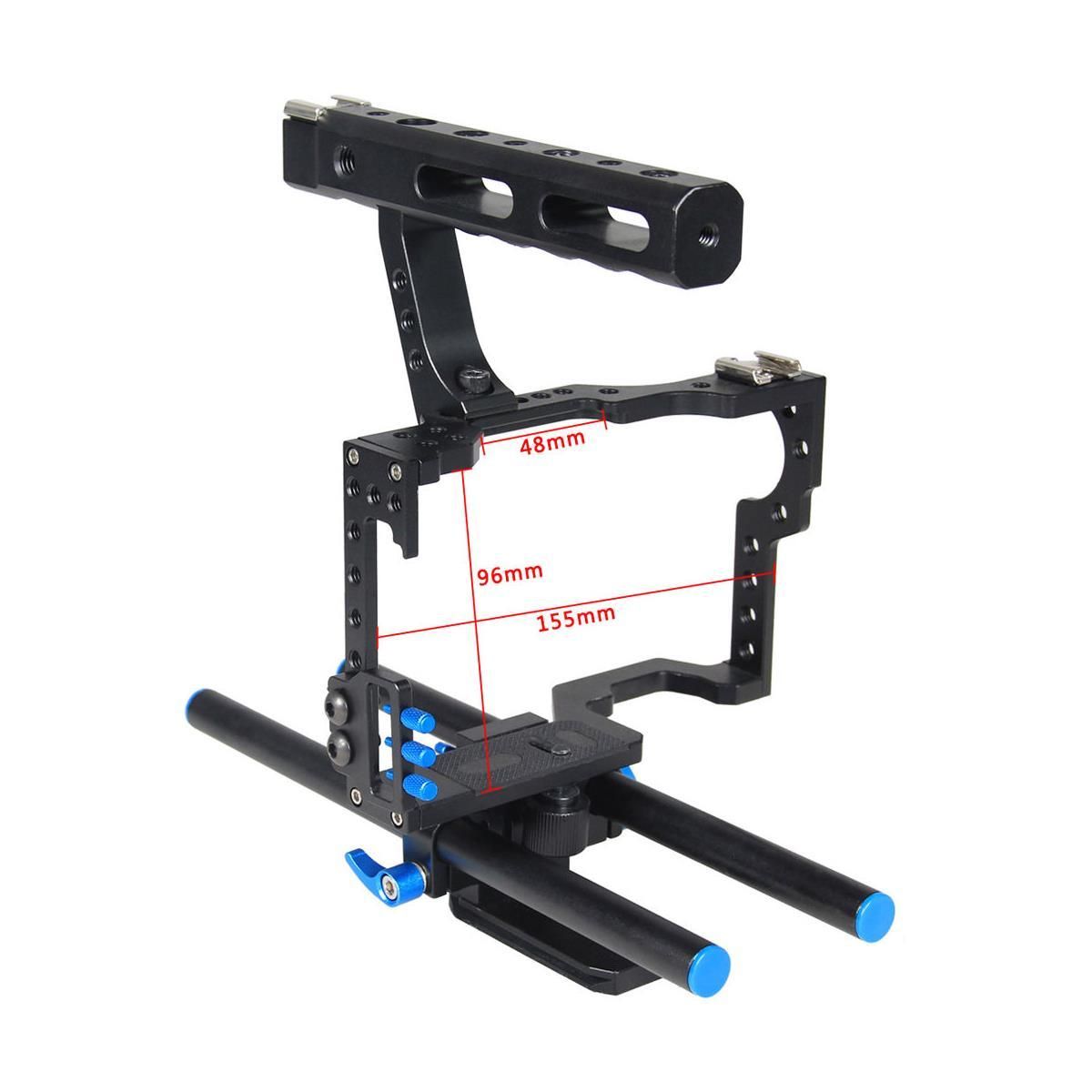 Клітка YELANGU C500 призначена для бездзеркальних камер — являє собою портативний каркас із міцного алюмінієвого сплаву з анодним окисненням поверхні. Твердий, міцний і стійкий до корозії метал. Форма клітки розроблена спеціально для використання з бездзеркальними камерами. Крім встановлення самої камери всередині, дає змогу монтувати низку аксесуарів, як-от зовнішній монітор, накамерне світло, мікрофон або рекордер. Потужна сталева конструкція надійно захищає вашу камеру від ударів та інших механічних впливів. Швидкознімний майданчик усередині клітки дає змогу швидким рухом витягнути камеру з клітки та знову встановити її. До комплекту клітки входить металева ручка (за потреби її можна зняти). До комплекту цієї клітини входить: механізм, що стежить фокуса, рефлектори-напрямні світла, ручка, , а також рейки.