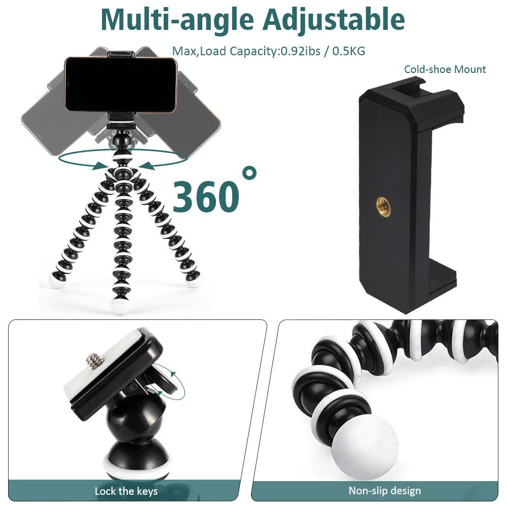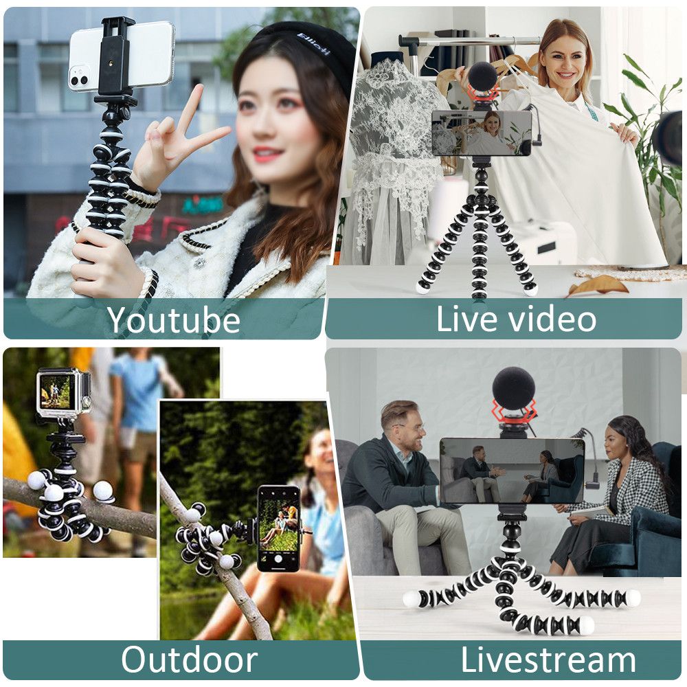 Цей комплект прекрасно підійде для роботи з усіма смартфонами. До комплекту входить високоякісний гнучкий штатив (настільний) з кріпленням для телефона або з кріпленням для екшн камер (універсальний трипод XTGP20). На кріпленні для телефона є з одного боку різь для встановлення на штатив, а з іншого кріплення типу "гарячий башмак" для встановлення накамерного мікрофона або LED-світла.