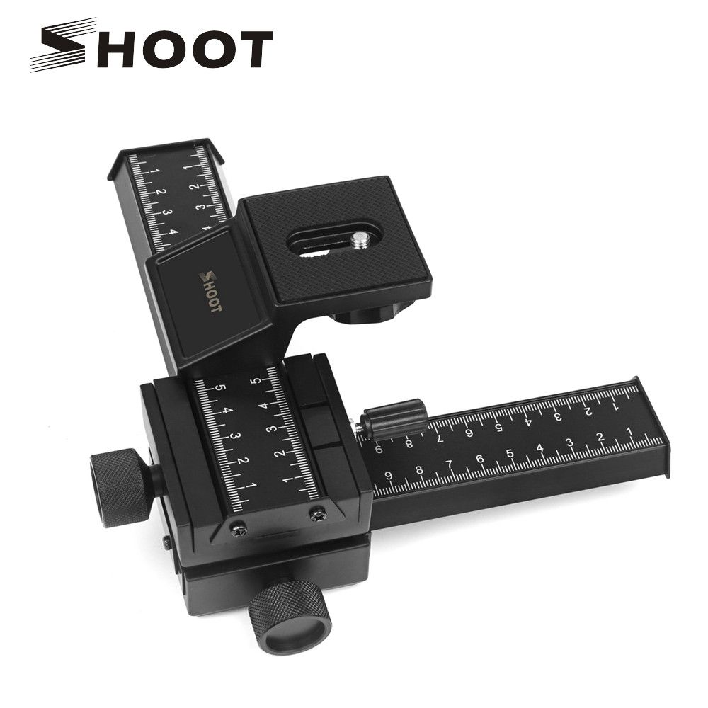 Макро рейка встановлюється на різьблення 1/4" штатива. З’ єднання макросів колії з камерою здійснюється гвинтом з Малювання 1/4". Вінт може переміщатися на 20 мм вздовж дальній прорізі. Поверхня майданчика, на який встановлюється камера, покрита прорізаним рельєфом.