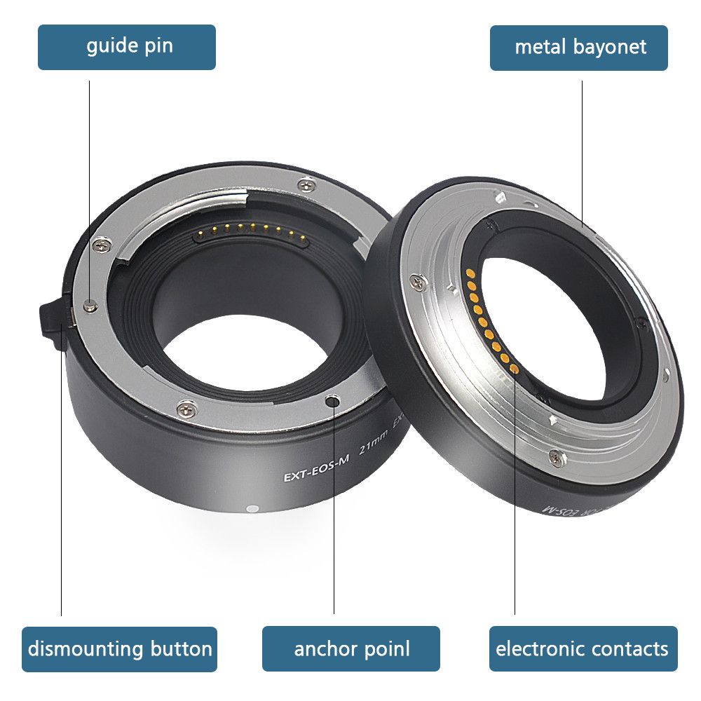 До набору Mcoplus EXT-EOS M (10mm+21mm) входять два автофокусних подовжувальних макрокільця 10 мм, 21 мм із байонетом EF-M для бездзеркальних камер Canon. Ці макрокільця Mcoplus можуть бути використані як по одному, так і в різних комбінаціях.