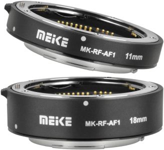 До складу Mike MK-RF-AF1 входять два автофокусні подовжувальний макрокольця 11ммммм і 18мм з байонетом для камер Canon EOS RF. Дані макрокольця Meike можна використовувати як по одному, так і одному.