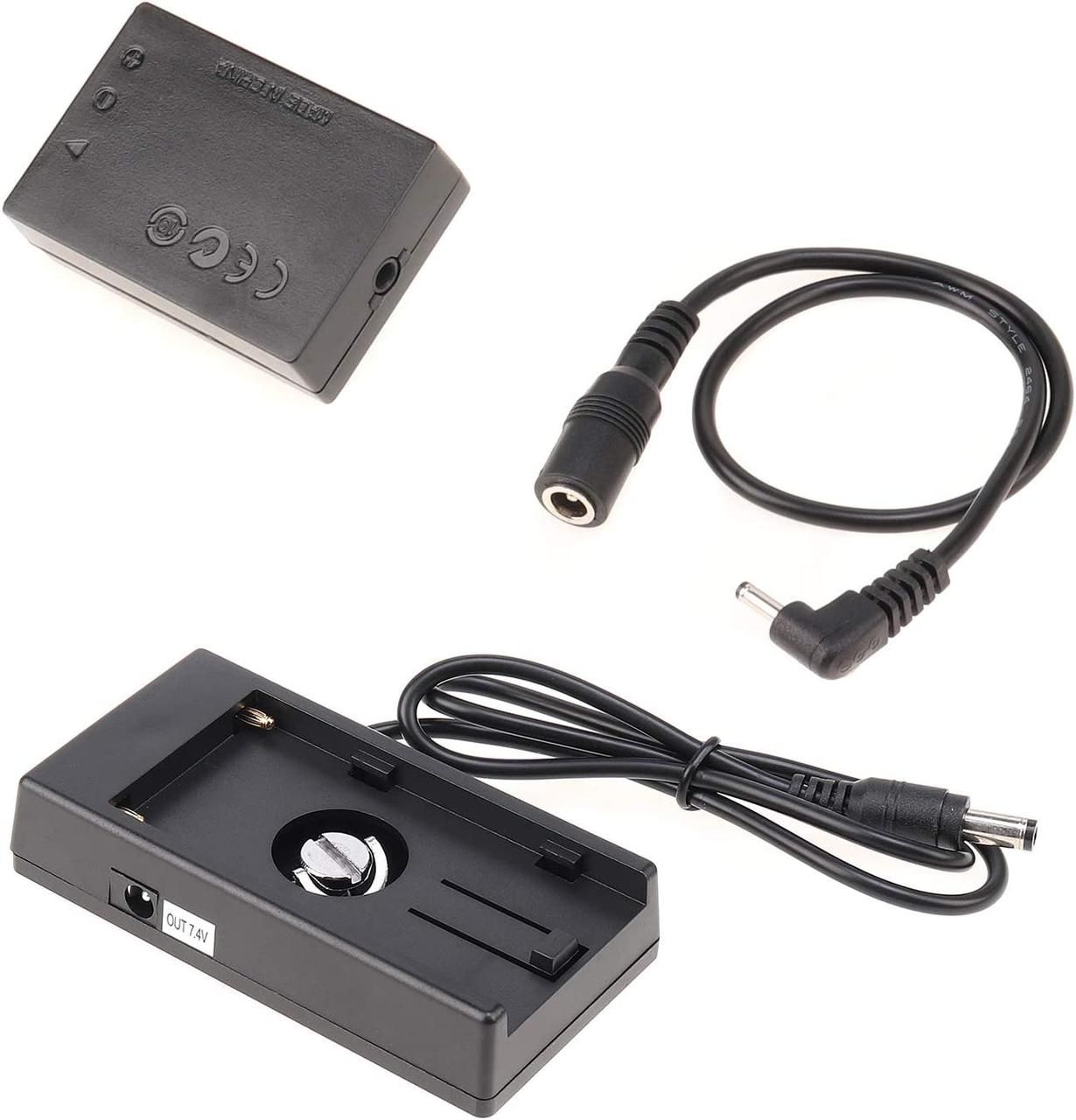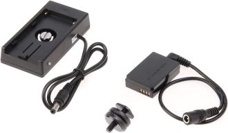 Адаптер для батарей NP-F і муфта для Canon LP-E12 розроблені для збільшення часу автономної роботи вашої камери завдяки акумулятору Sony NP-F серії. Він має різні вихідні порти, вихідний порт 7,4 В (постійного струму (5,5/2,1 мм))  і USB роз'єм. Зі встановленим акумулятором цей адаптер можна використовувати як Powerbank. Він обладнаний світлодіодним індикатором, який загоряється червоним, коли рівень заряду батареї менш ніж 30 відсотків. Коли індикатор блимає, це означає, що рівень заряду батареї менш ніж 10 відсотків, і вам необхідно замінити батарею. Пластина має гумову прокладку внизу для стабільнішого встановлення.