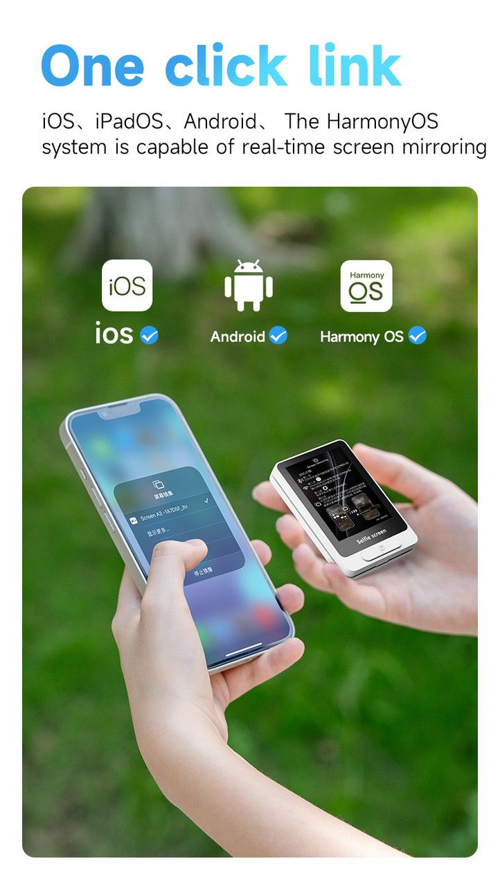 Отримуйте ідеальний кадр із задньої камери смартфона, не жертвуючи зручністю. A1 Vlog Selfie Monitor — компактний магнітний екран-помічник, який кріпиться до вашого телефона та показує прем'ю із задньої камери прямо перед вами. Знімайте влоги, ведіть прямі ефіри та робіть селфі професійної якості з різкістю й передаванням кольору основної камери.
