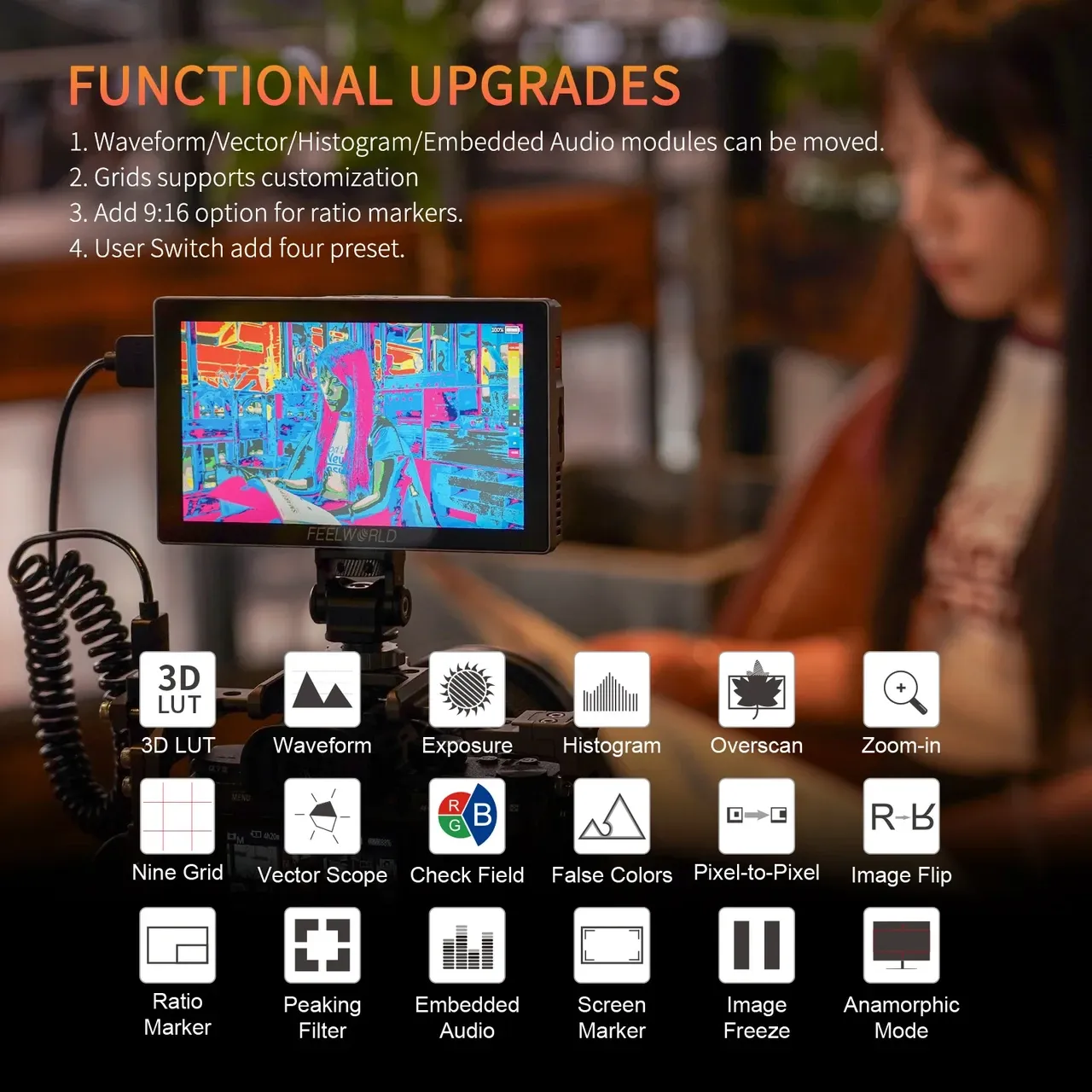 Накамерний монітор, дисплей FeelWorld 5,5" дюймовий P6X, 1000 cd/m2, 4K, 3D LUT