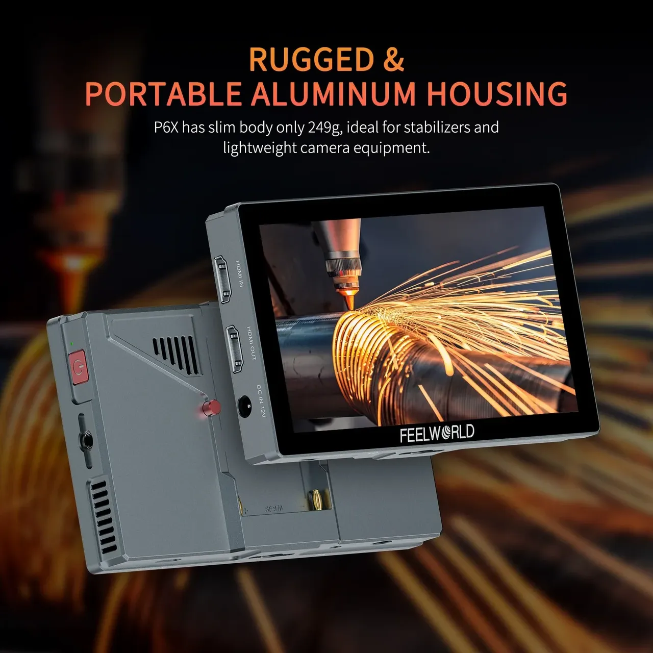 FEELWORLD P6X має швидкість передавання до 4K@60Hz HDMI, що дає змогу відчути плавність високошвидкісного передавання; 5,5-дюймовий сенсорний екран високої яскравості робить знімання ефективнішим; повністю металевий корпус, міцний і довговічний; Ряд допоміжних функцій камери допомагає фотографам створювати композицію на місці та заощаджувати час на етапі постоброблення. P6X ідеально підходить для творців відео.