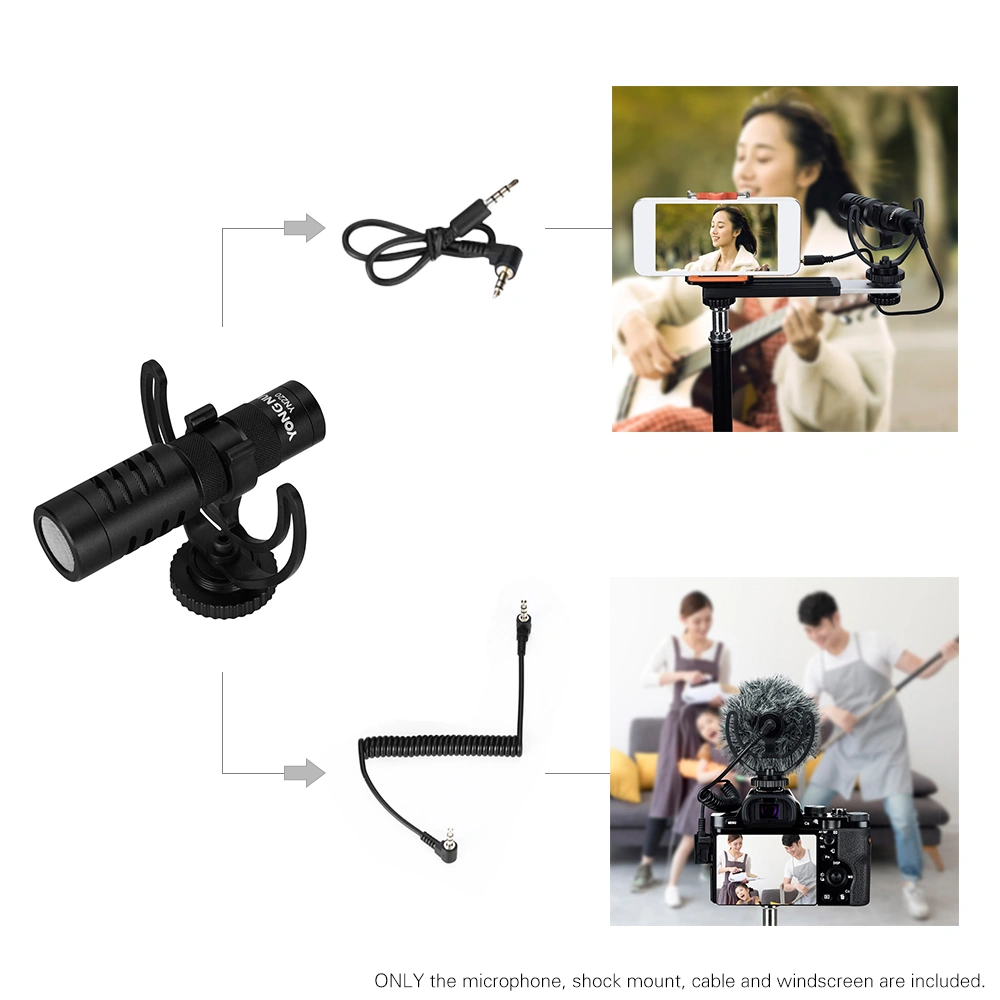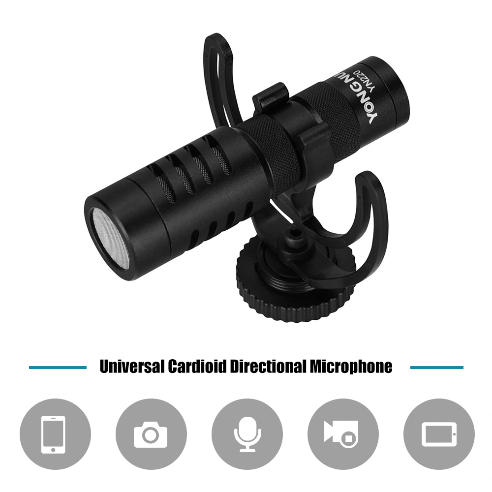 Напрямлений накамерний мікрофон Yongnuo YN220 Це дасть вам змогу значно покращити якість звуку під час знімання відео. Мікрофони допомагають досягти натурального, чистого звучання з високою чіткістю, забезпечує високу чутливість, широкий діапазон частот, а також запис звуку на більшій відстані. Мікрофон фіксується на гарячому башмаці камери або іншому аксесуара (штатив, стоянка і т.д) які мають різьблення 1/4". До комплекту входить вітрозахисна - дозволяє отримати хороший результат при запису на вулиці, а також кабель як для камери 3.5m TRS (mini jack) і смартфон 3.5mm TRRS (mini jack).