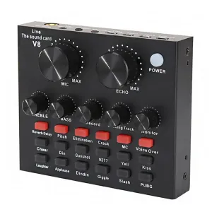 Зовнішня звукова карта V8 — це ідеальне рішення для блогерів, стримерів, соло музикантів, кому бракує одного мікрофонного та одного лінійного входу. Під'єднуйте фантомне живлення та записуйте вокал, і одночасно заводьте гітару, все в одну компактну чорну коробочку. Вона також ідеальна для подкастів, влогів та інших завдань, де треба записувати голос. Крім того, що карта надає високу якість звуку, у комплекті йде багато програмного забезпечення.