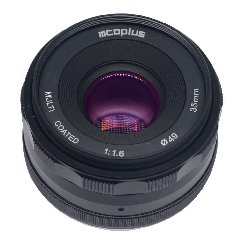Світлий мануальний об’єктив Mcoplus 35 mm F/1.6 для беззеркальних камер.