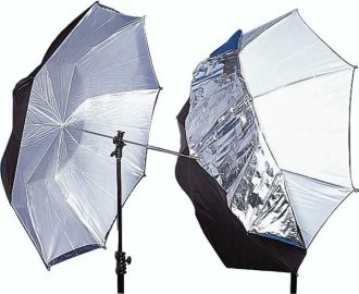 Фото-зонт 2 в 1 - чорно-сібрий на відображення + білий Arsenal 110 см - має зйомку. У разі потреби ви можете встановити належну поверхню: