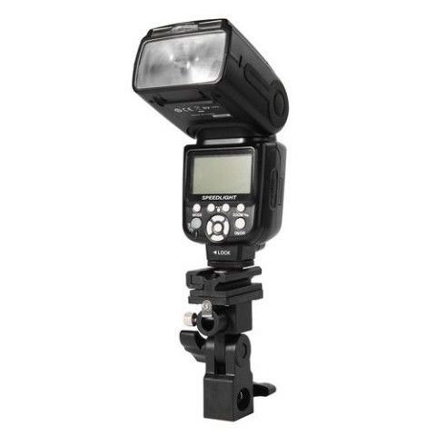 Держальник для спалаху має міцну конструкцію з надійною фіксацією спалаху затисненим гвинтом.