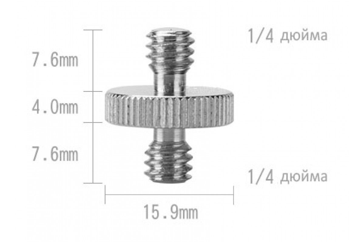 Двосторонній гвинт широко використовується як додатковий перехідник, з'єднувач різноманітних фото аксесуарів: штативних головок, моноподах, штативах, студійному світлі, GoPro і тд.