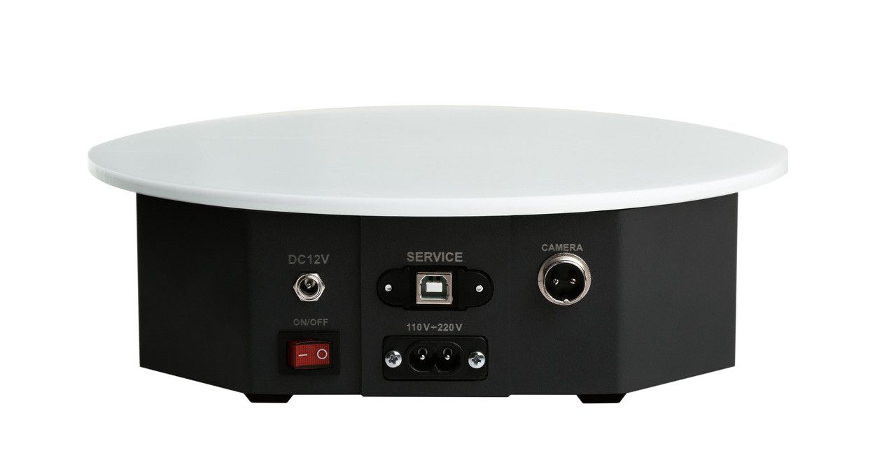 Компактний розмір - столик удобен для зйомки в фотокубі. Матеріал корпусу - легкий і міцний композит. Максимальна маса знімання - 20 кілограмів.