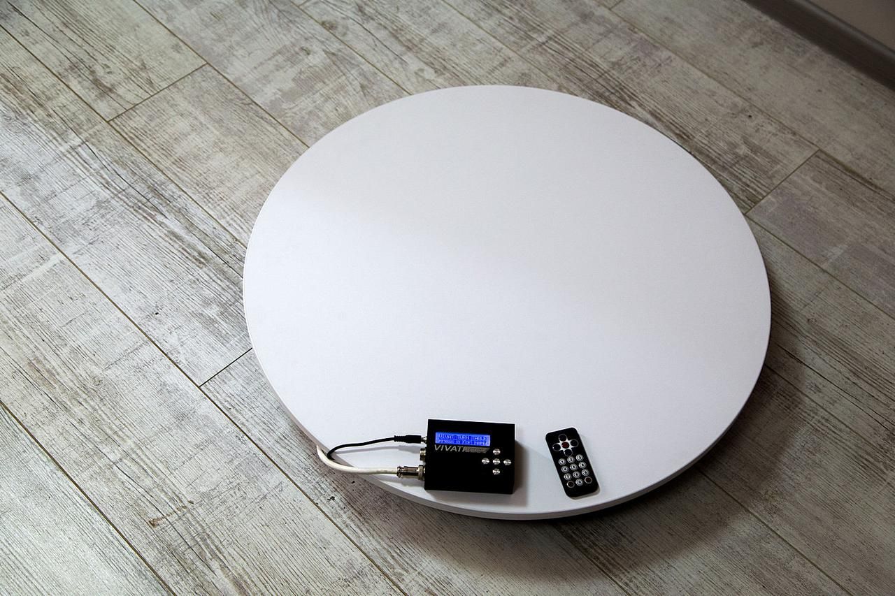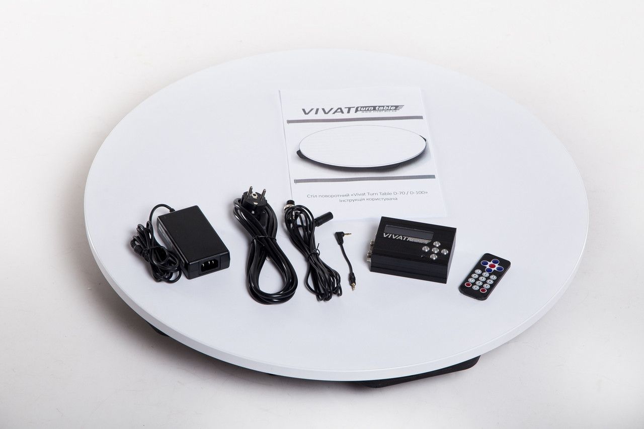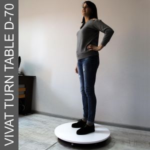 Vivat Turn Table D-70 - збільшена версія пристрою для автоматичного створення об'ємних зображень речей (товарів для інтернет-магазинів, електронних каталогів продукції, аукціонів антикваріату...). Платформа призначена для знімання предметів масою до 150 кілограмів: збірки одягу на модлях або на манекенах, побутової техніки, меблів, інструментів...