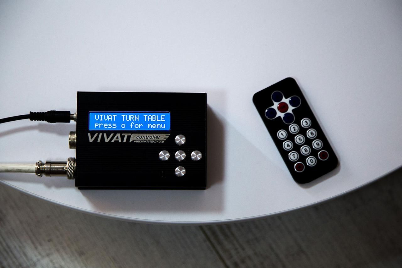 Vivat Controller керує рухом платформи і спуском затвору фотоапарата. Він з’єднується зі столами кабелем завдовжки 3 метри. Назви вбудованого LCD екрана і кнопок керування на корпусі виключають необхідність використання ПК або інших пристроїв керування. Може працювати від блоку живлення (у комплекті) або від акумулятора 12В.