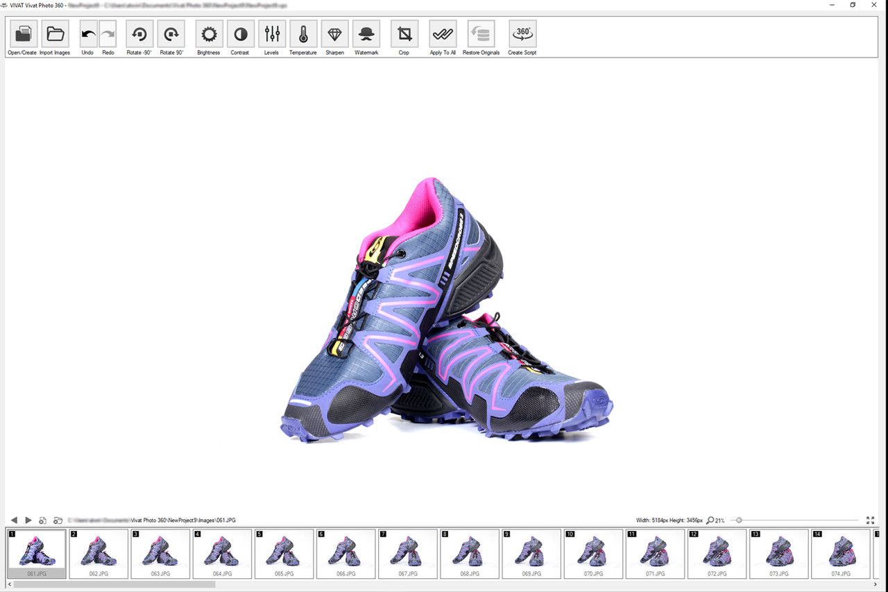 Програмне забезпечення Vivat Photo 360 Software (Windows), яке йде у комплекті, дозволяє легко створювати базову обробку відзняті послідовності зображень (ярість, контраст, рівні, кольорова температура...), додати власний логотип і створити скрипт Фото 360 градусів, який потім можна завантажити на веб-сайт.