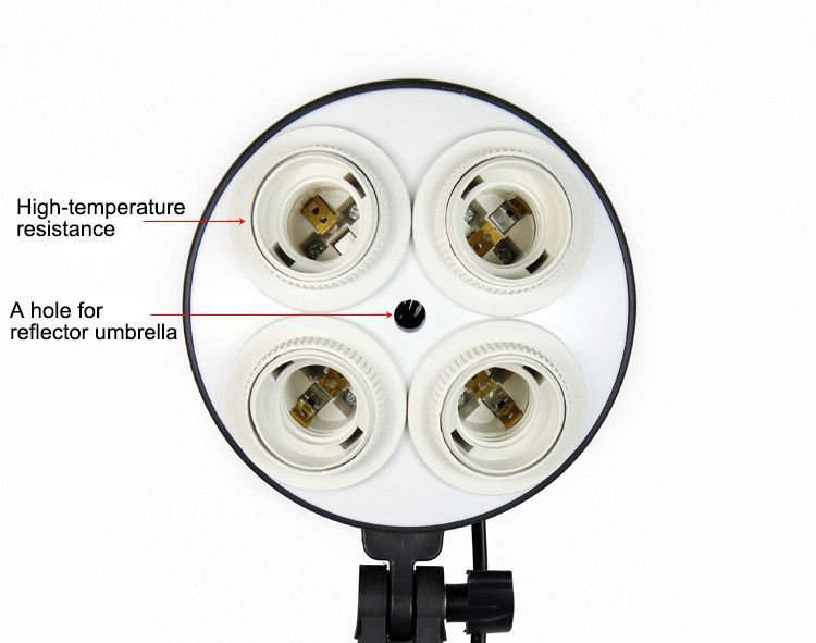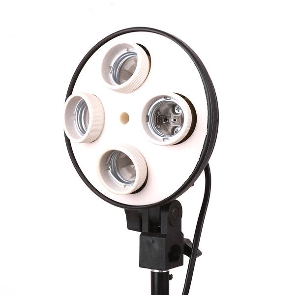 Це багатофункціональний держак - кронштейн E27 для світла фото студії. Сумісний з цоким E27 для розміщення чотирьох ламп або патронних спалахів. Легко кріпитися на штатив і легко регулюється для різних кутів зйомки. Ідеально підходить як держатель фото парасольки, ведмединих спалахів чи лампочок.