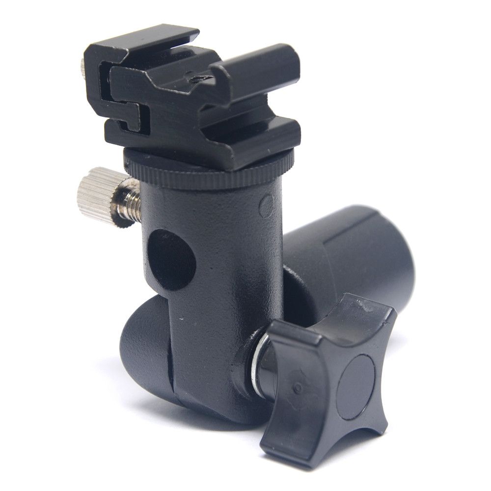 Держальник для спалаху має міцну конструкцію з надійною фіксацією спалаху затисненим гвинтом.