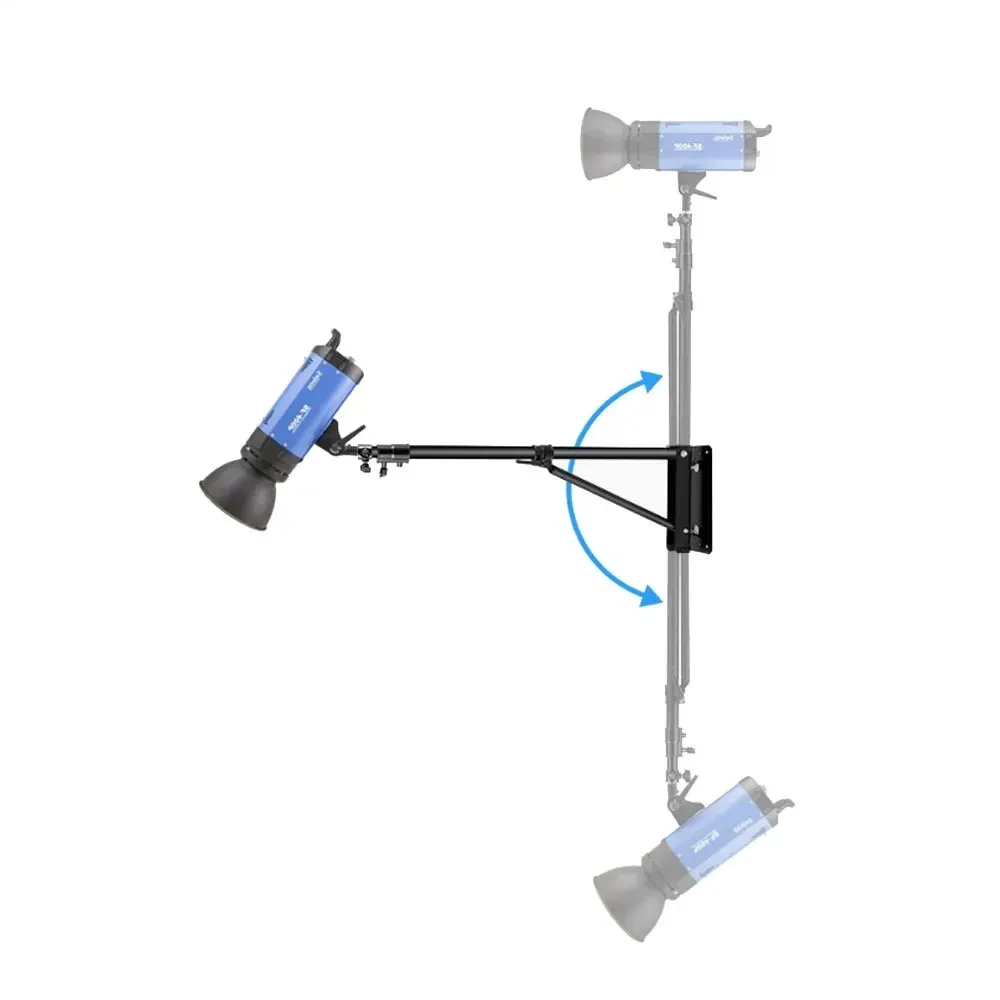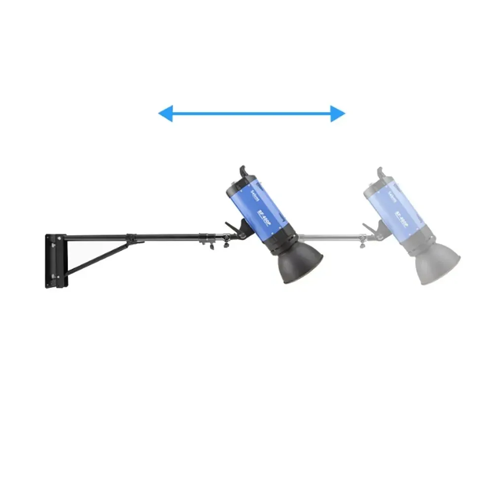 Основа кронштейна виготовлена з міцної сталі. Кронштейн можна відрегулювати у вертикальній і горизонтальній площині (ліво/праворуч, вниз/вгору, на подовження від 102 до 180 см). Подовжений адаптер-перехідник, з нековзною текстурою для стійкості, використовується для встановлення студійних спалахів, освітлювальних приладів і різних аксесуарів із втулкою 5/8" або гайкою з різзю на 1/4" або 3/8" на стійки, кронштейни та інші пристрою кріплення. Кронштейн кріпиться до стіни завдяки чотирьом анкерним болтам.