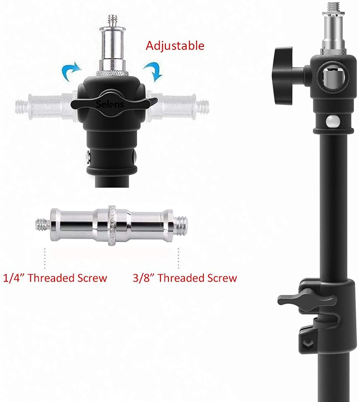 Телескопічний настінний (стельовий) кронштейн призначений для встановлення освітлювального обладнання з посадковим діаметром 5/8" або різзю 1/4" і 3/8" у місцях, де не можна використовувати класичні студійні стійки та струбцини.