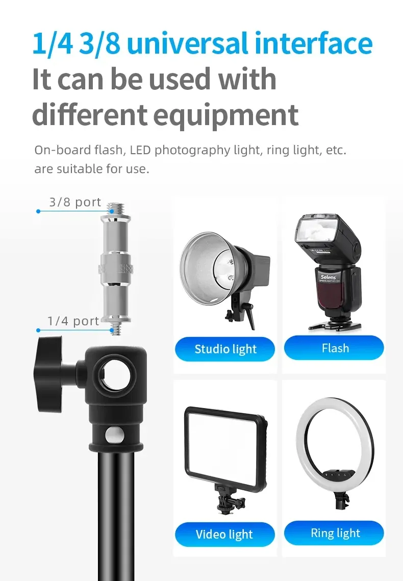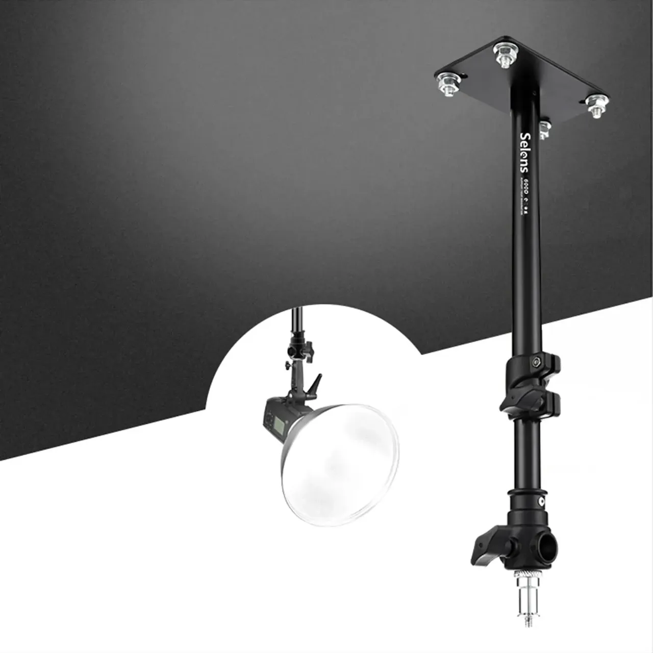 Телескопічний настінний (стельовий) кронштейн призначений для встановлення освітлювального обладнання з посадковим діаметром 5/8" або різзю 1/4" і 3/8" у місцях, де не можна використовувати класичні студійні стійки та струбцини.