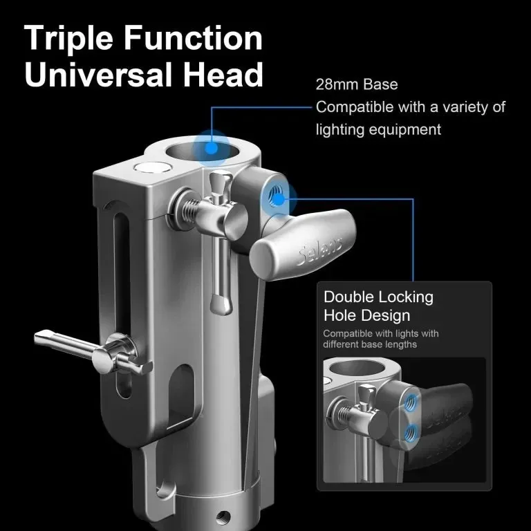 - Універсальна головка Baby Pin — спеціально розроблена конструкція забезпечує сумісність із різними типами кріплень, даючи змогу використовувати стійку із широким спектром обладнання, від камер до освітлювальних приладів6.