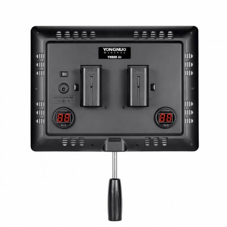 Пристрій має налаштування потужності та кольорової температури 5500K. Освітлення YN600Air складається з 192 світлодіодів з кутом 110 градусів. Сила світла і кольорова температура можна плавно регулювати за допомогою ручки.